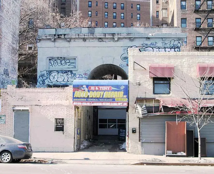 Nunca ha estado marcado, ni figura en el Registro Nacional de Lugares Históricos. Está un poco olvidado, pero pase lo que pase el arco sigue en pie después de 152 años, un icono de Inwood, que sirve como entrada a JB & Tony Auto Body Repair. Eso es un poco interesante.