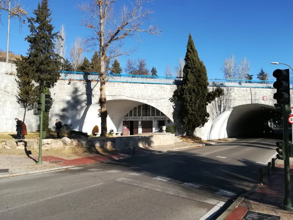 Corría 1977 cuando se levantó esta pequeña iglesia improvisada, la de Santo Domingo de la Calzada, justo en el ojo de un puente de la M-30. Los habitantes de la zona de Puerta de Hierro urgían una iglesia así que su función inicial era temporal, un parche hasta que la nueva parroquia del Bautismo del Señor encontrara su sitio definitivo. Pero como pasa a veces, lo temporal se volvió permanente.