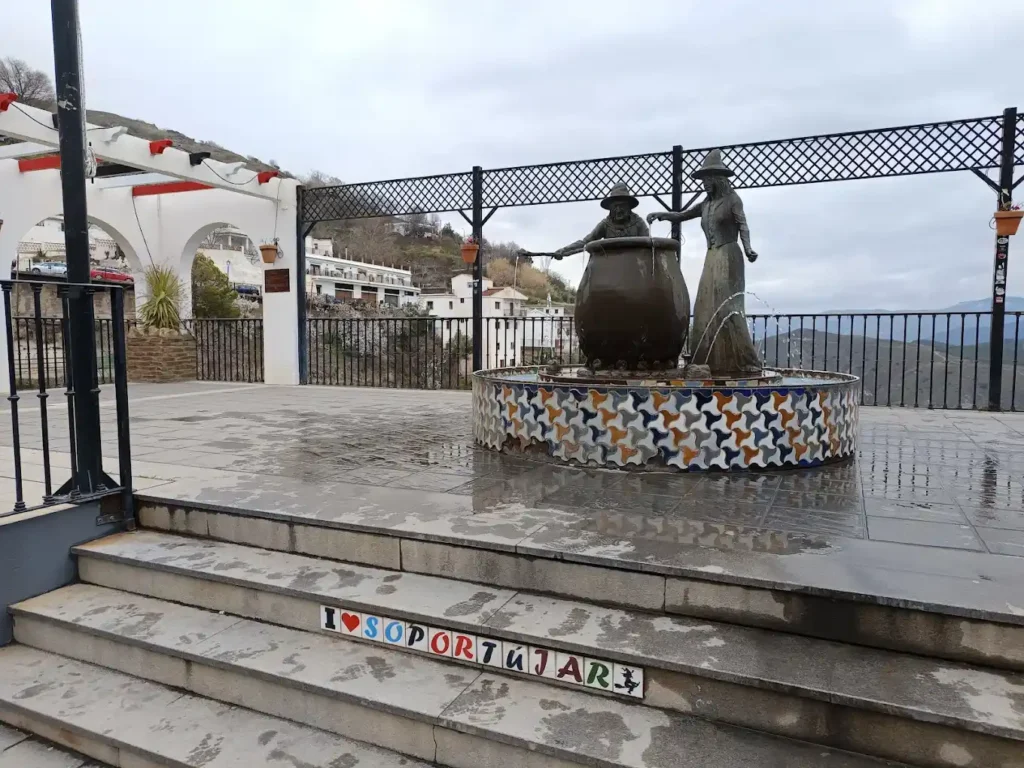 En el Mirador del Embrujo, uno de los rincones más visitados de Soportújar, se encuentra la Fuente de las Brujas, una escultura que refuerza la identidad mágica de este pequeño pueblo de la Alpujarra granadina.