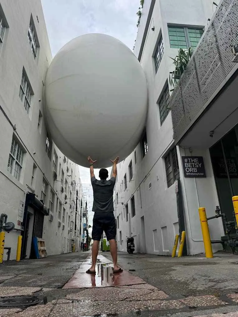 La gigantesca esfera, que parece un componente futurista y orgánico en medio de dos edificios Art Decó, también forma parte de los esfuerzos creativos impulsados por Jonathan Plutzik, el propietario principal del Betsy Hotel.